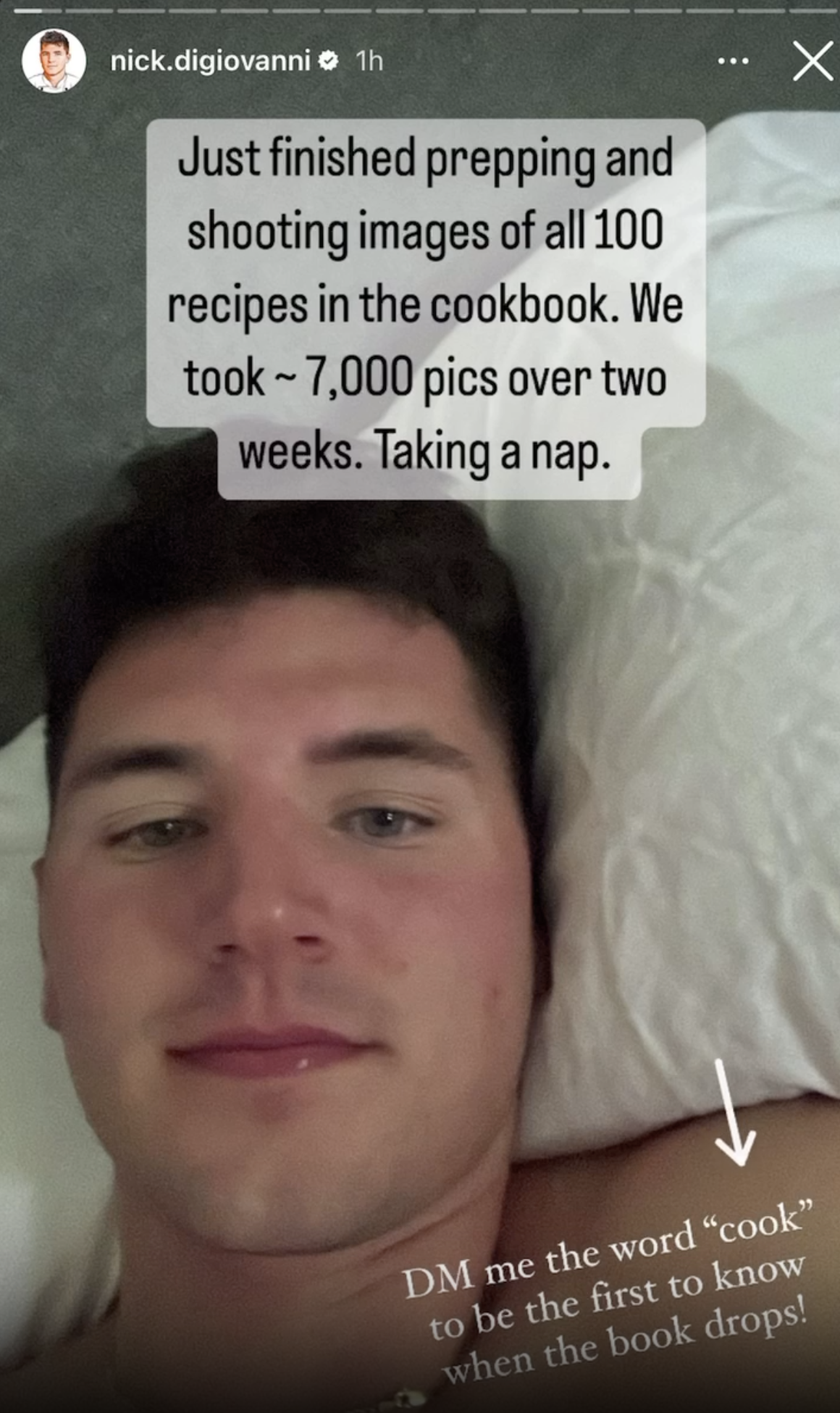 🧑🍳 Nick DiGiovanni told his IG followers to DM him “Cook” to be the first to know when the book drops.👇