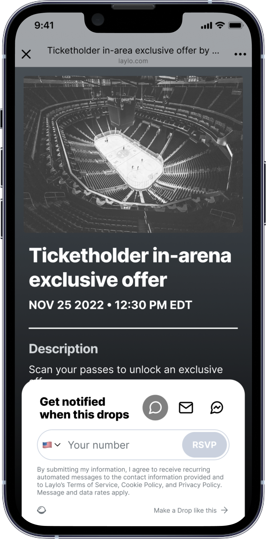 Sports super fans love knowing that they’re getting offers and news ahead of everyone else. Use Laylo to let them get ahead and communicate anything special to them early whether it’s tickets, merch or off-season events.