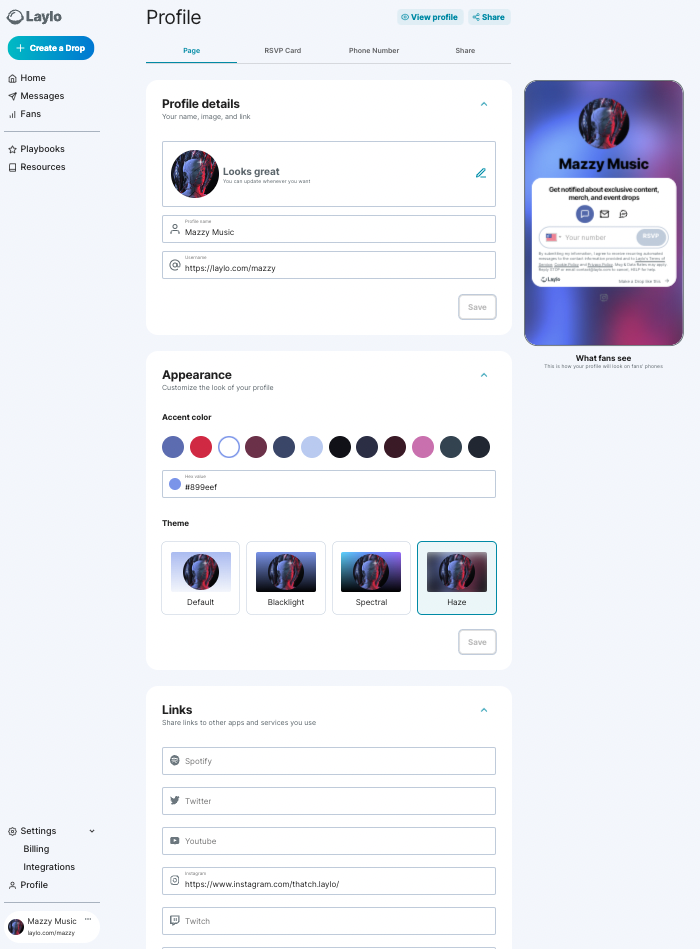 Your profile page is a public link where fans can join your list anytime, even if you don't have a drop to announce.