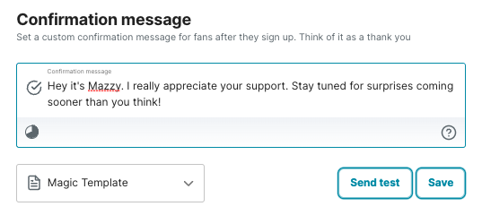 Personalize the message that fans will receive immediately after signing up. Make sure to thank them!