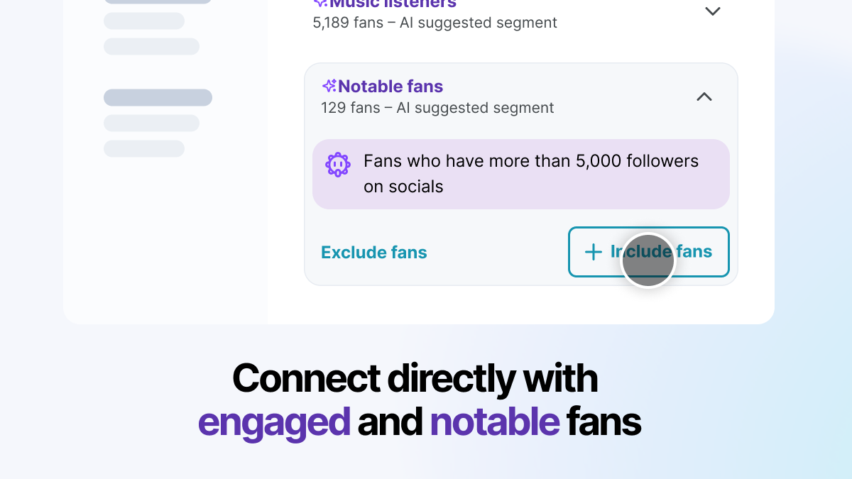 Now, enriched fan segments like merch buyers, ticket buyers, and music listeners show up as smart suggestions as you start crafting your message.