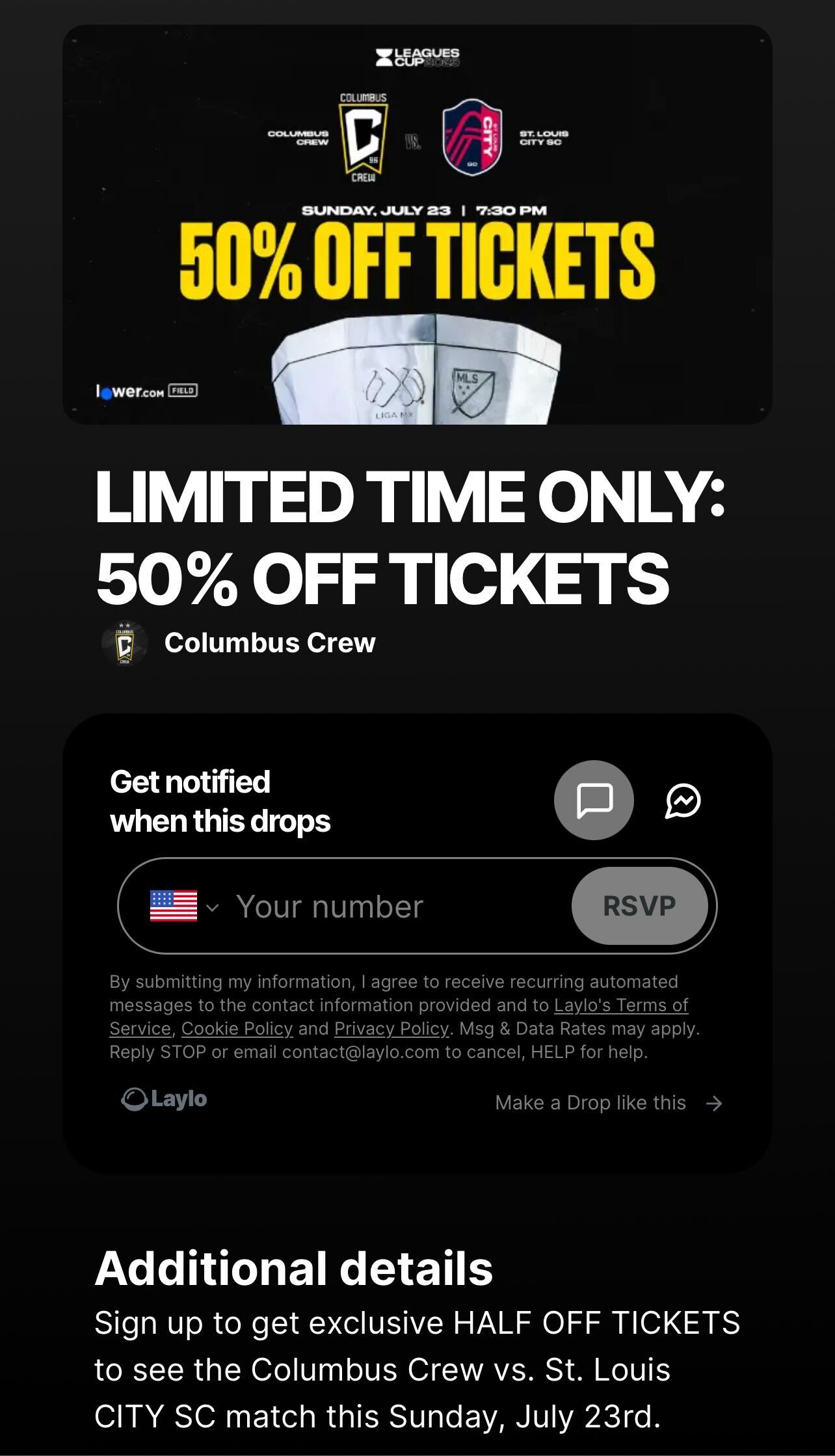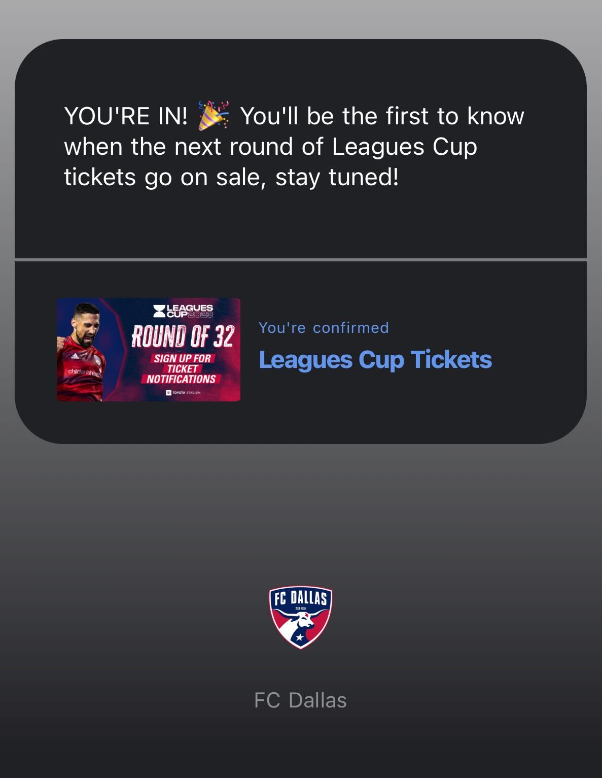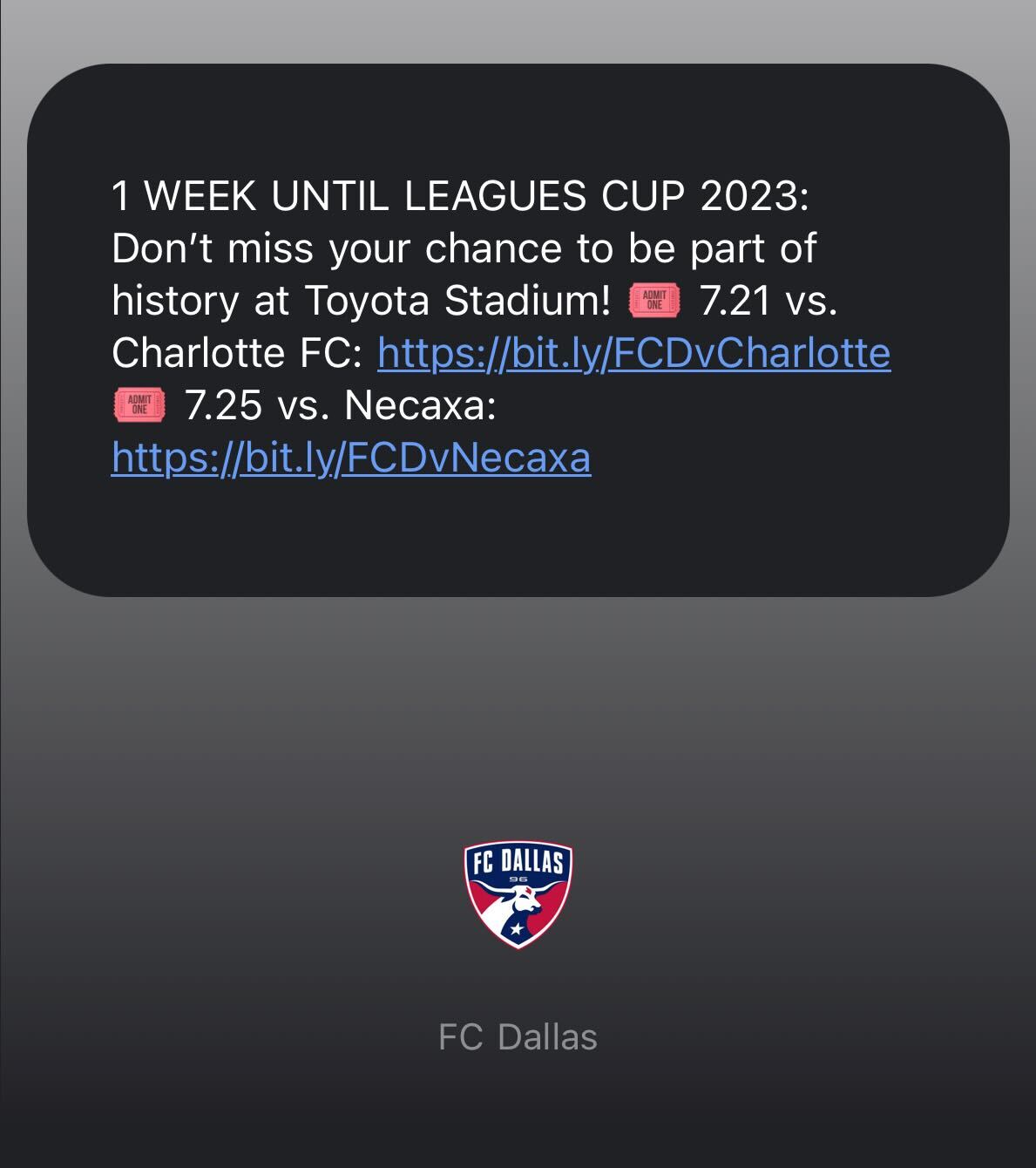 👋 Columbus Crew and FC Dallas sent out Drop Day Messages to the all the fans who RSVP’d and included links to buy Leagues Cup tickets.