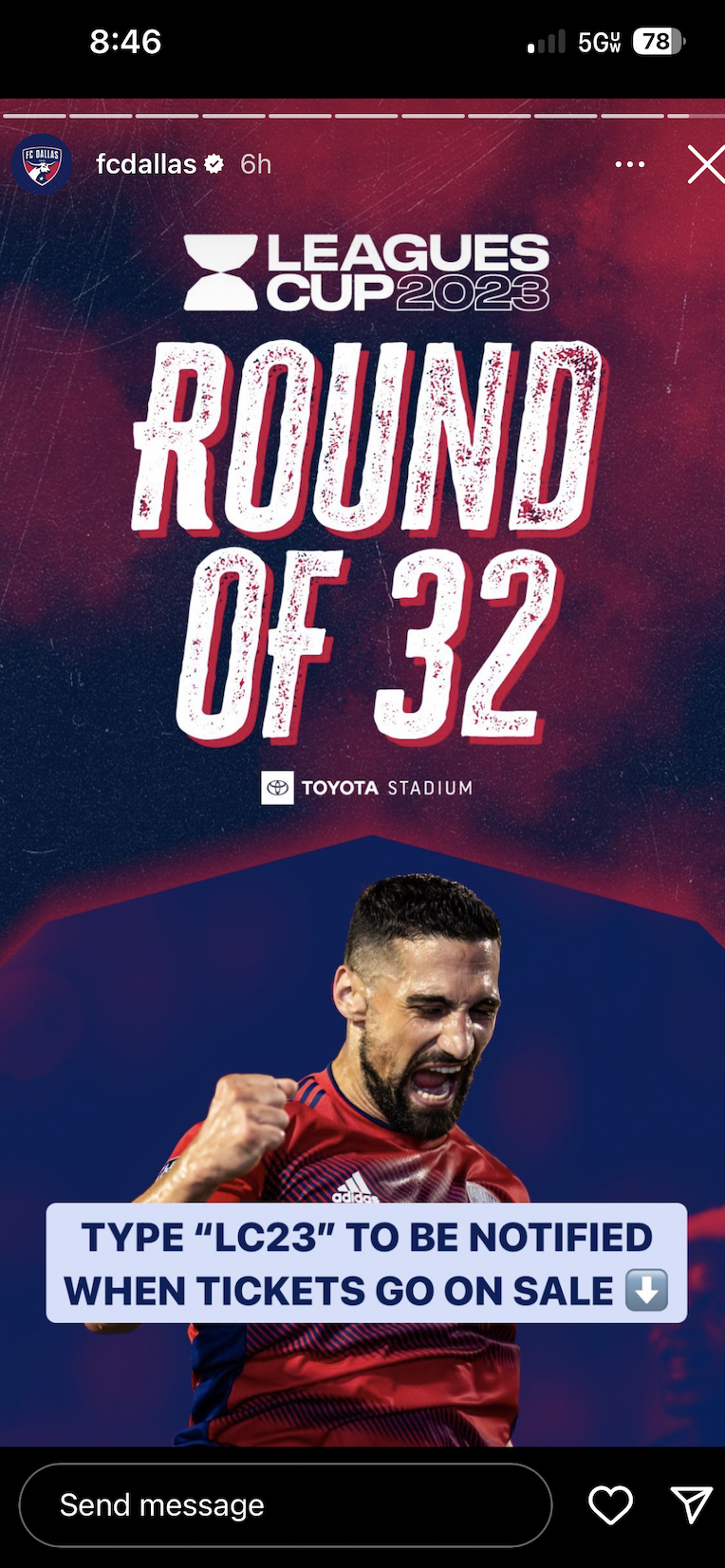 🎟️ To promote ticket sales for their Round of 32 appearance, FC Dallas posted an Instagram Story encouraging fans to respond with key word "LC23" to be the notified the second tickets go on sale.