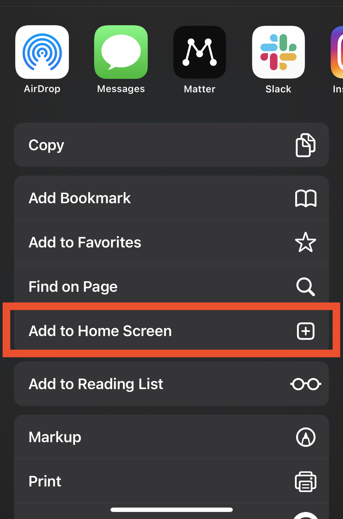 Choose Add To Home Screen