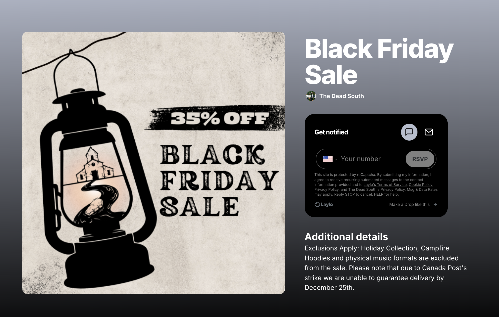 - Nov 28th, pm: Black Friday Reminder w/ Link (Social Media + Laylo Message)