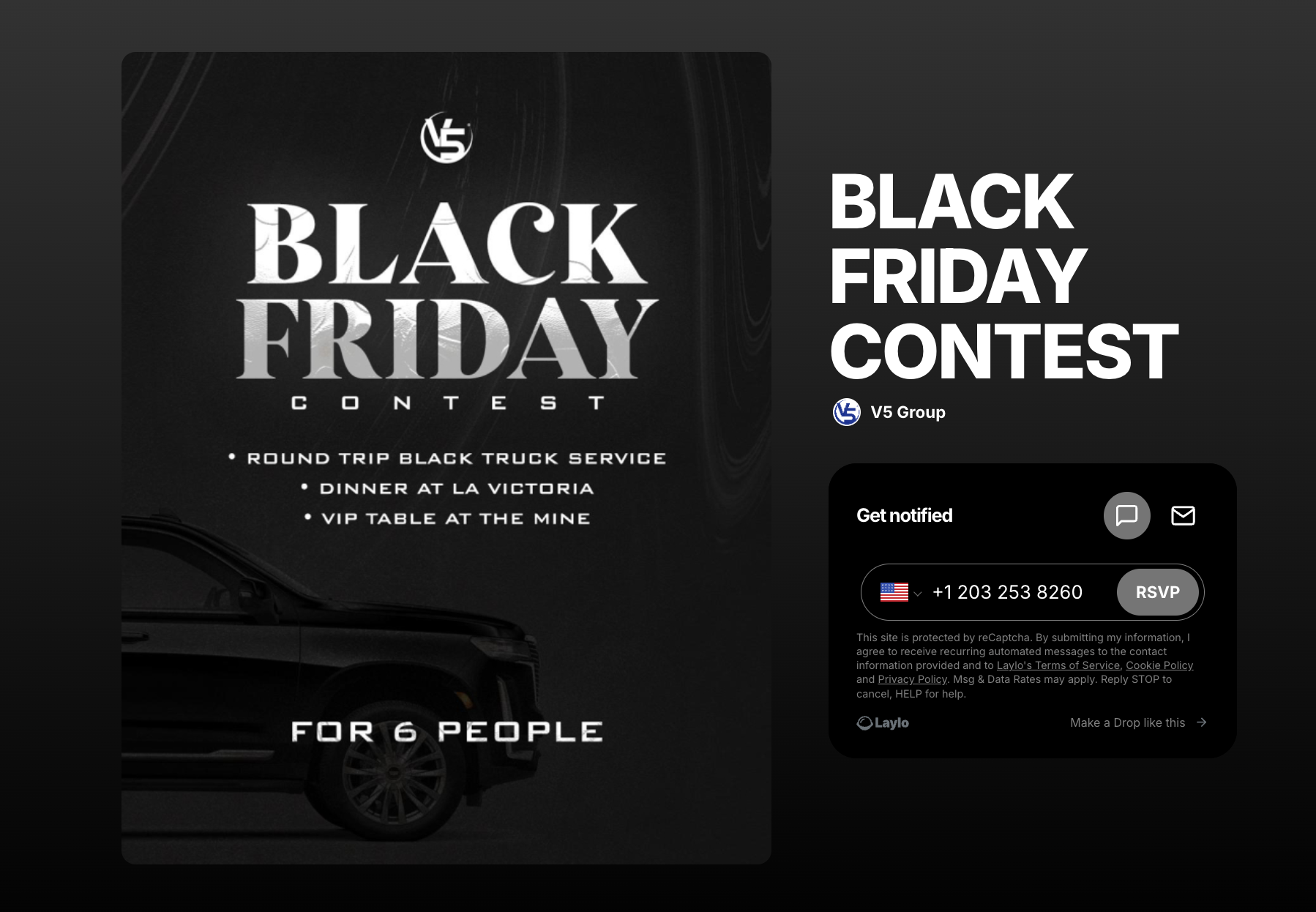 👉 Log into Laylo.com and quickly create a drop page for your upcoming Black Friday sale. Add a photo and customize the color to fit your vibe!