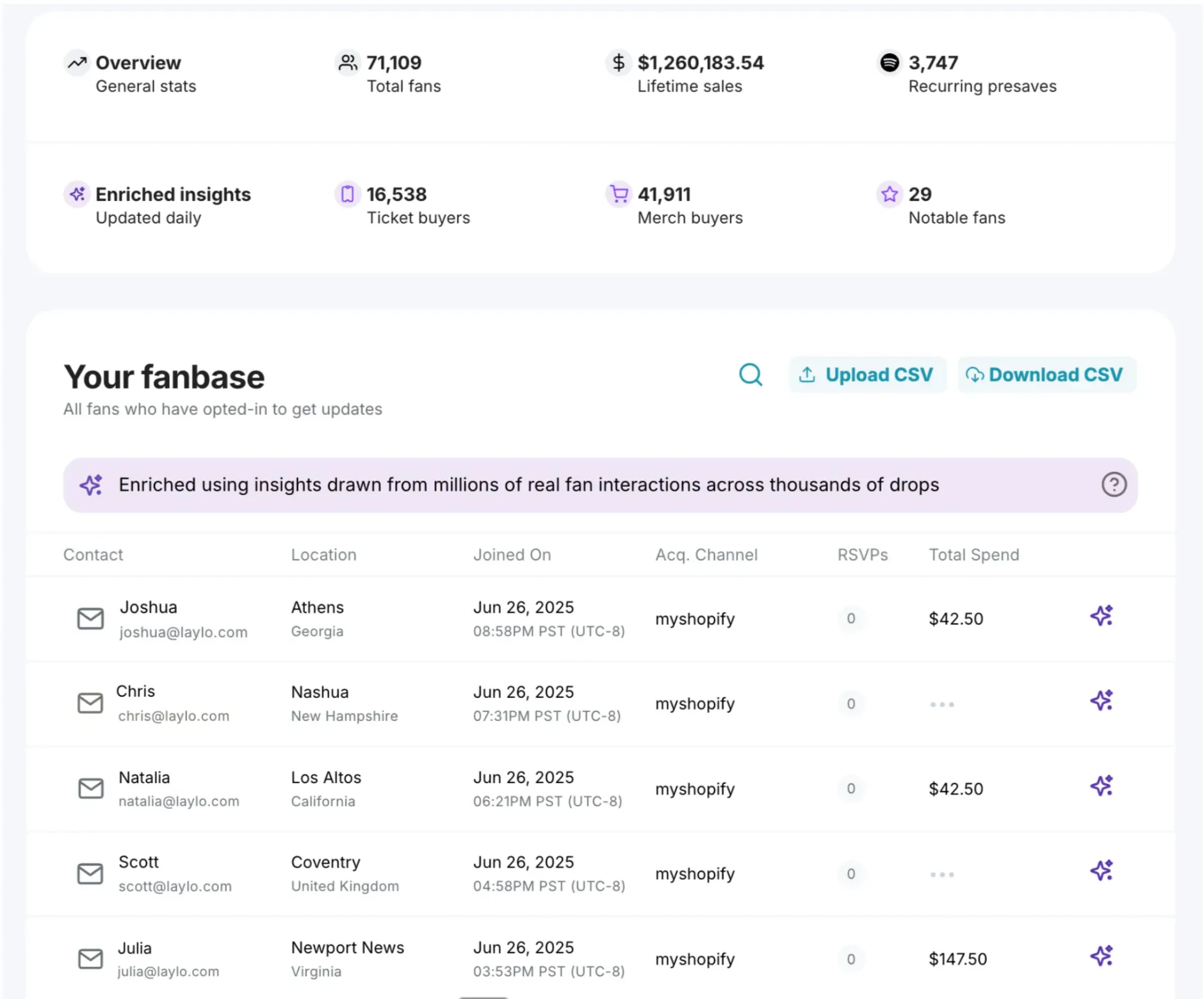 🗣 Make sure you’re reaching your biggest fans by uploading your fan lists into Laylo.