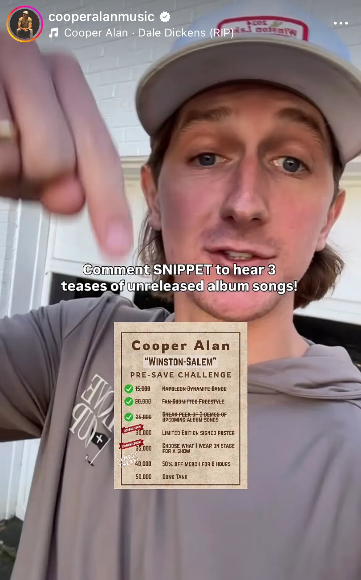 Cooper also runs Laylo-powered giveaways that fans can enter through Instagram. Each campaign brings in thousands of new contacts and rewards the fans who pay closest attention.
