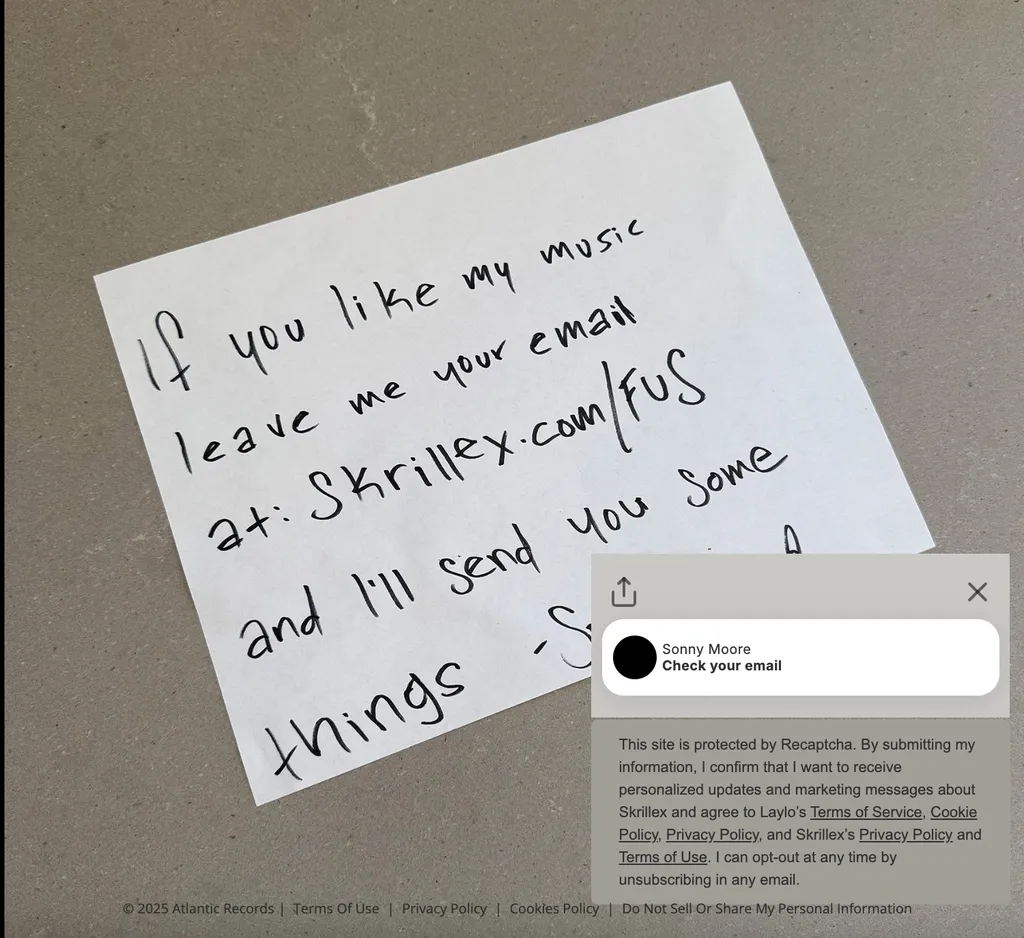 To build anticipation, Skrillex used Laylo to collect email sign-ups through his website and social channels with a simple message: If you like my music, leave me your email and I’ll send you some things - Sonny Moore.