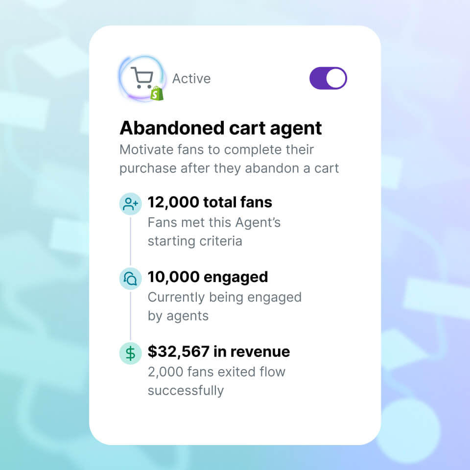 Every successful sale shows up in your dashboard with the message that converted, the fan it reached, and the revenue it recovered.