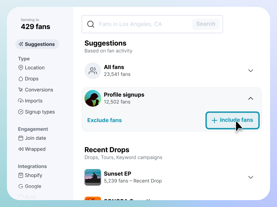 Choose who gets your message based on location, signup method, past activity, or with segments from connected apps.