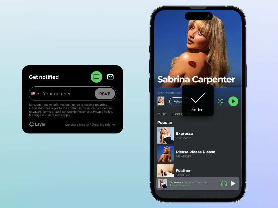 Let fans instantly presave your music and follow you on Spotify as they RSVP.