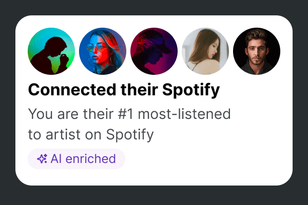 Identify fans who stream your music most and see their top 5 favorite artists.
