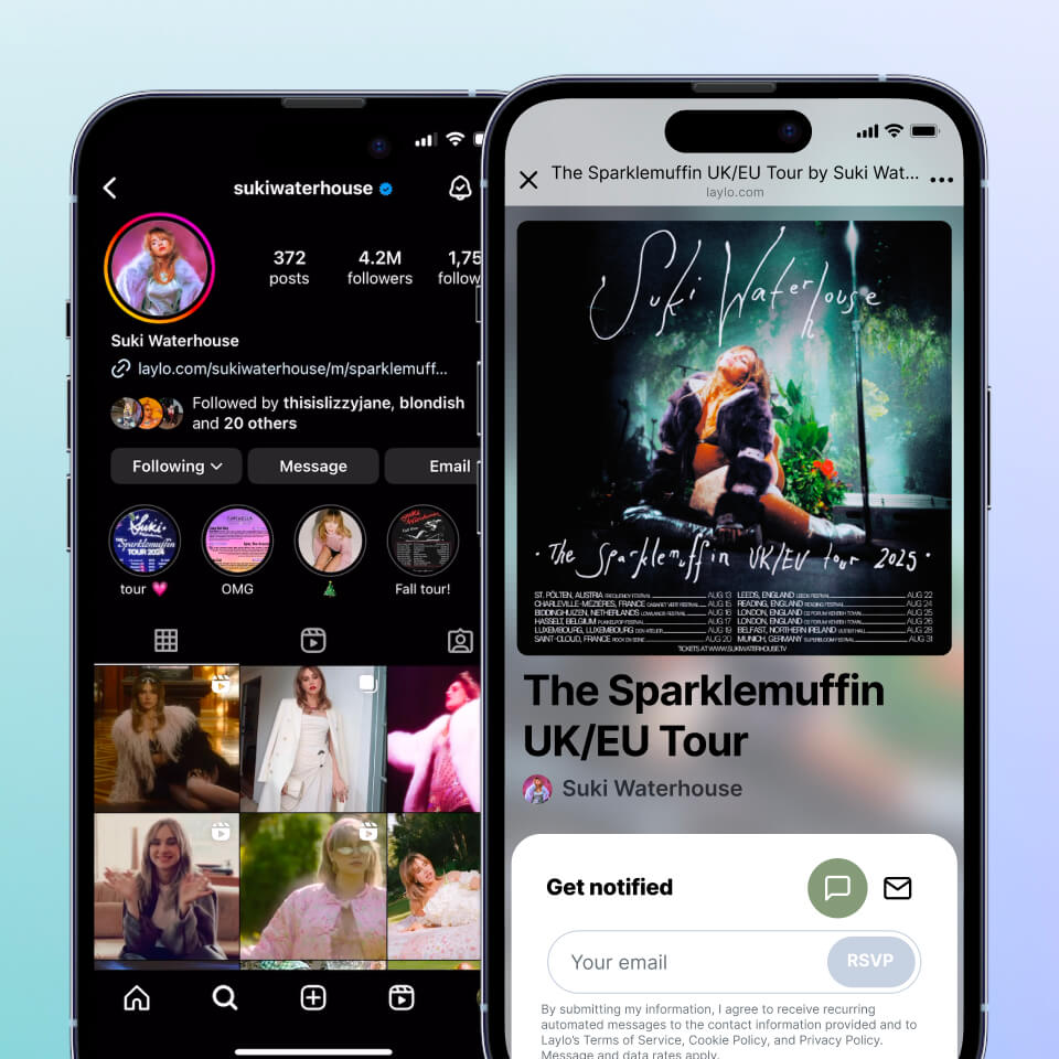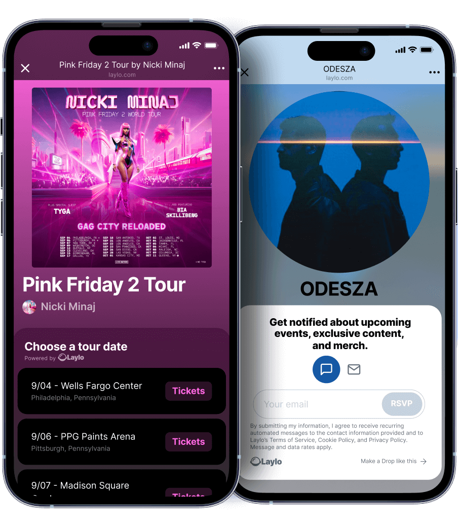 Fans RSVP for their city’s ticket drop. If certain stops need an extra push, Laylo retargeting makes it easy.