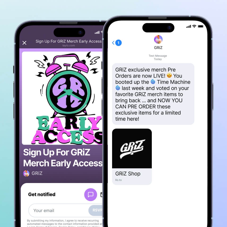 Stop switching between email, SMS, presave, and tour announcement tools. Laylo replaces them all with one drop platform. Premium features start at just $25/mo + messaging.